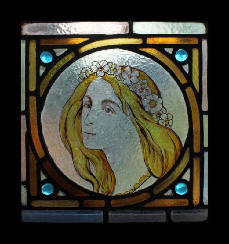 Rare Stunning Pre Raphaelite Maiden Stained Glass Painted Stained